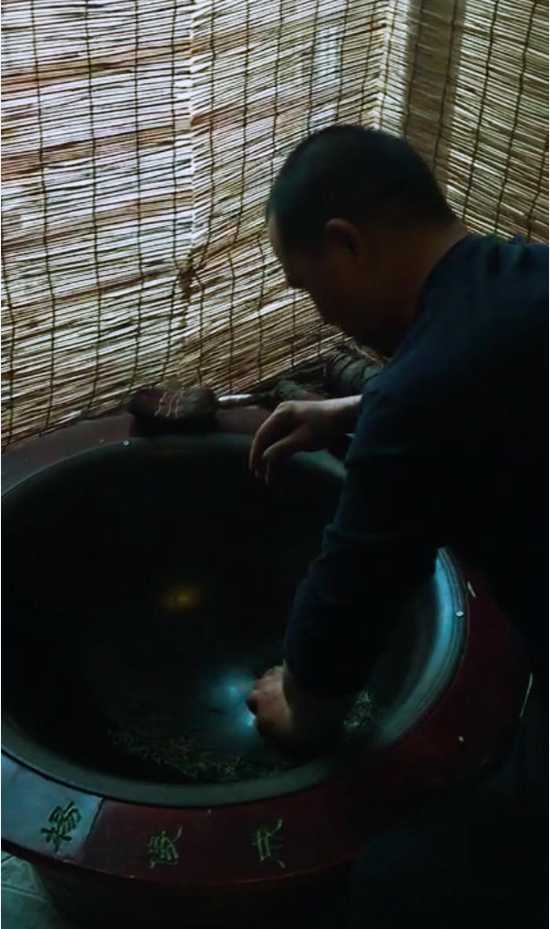 很多手工制茶人都会戴上手套炒茶避免被200多度的高温烫伤,而杨俊成却一直坚持用手炒茶!