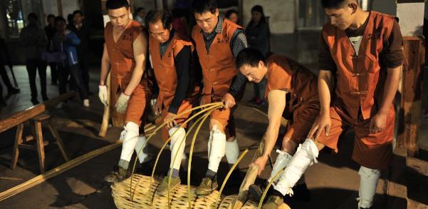 相传清朝道光年间(1820年前)安化酉州制作第一支花卷茶(即百两茶)。而后的同治年间,晋商与边江刘氏踩茶师合作探索,改百两花卷茶为千两茶。采用大长竹篾篓将黑毛茶踩压捆绑成圆柱形的“千两茶”,而千两茶制作过程中负责踩茶技艺的茶工们也就是现在所说的“杠爷”!那么到底是杠爷火还是GAI爷更火呢?