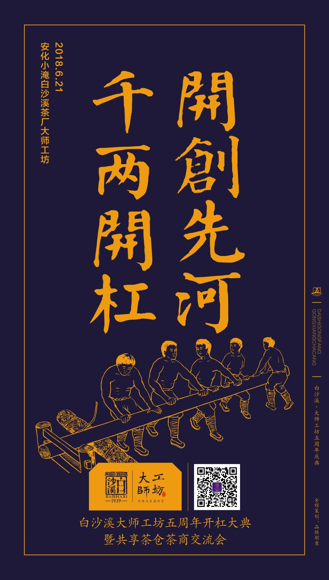 这次白沙溪大师工坊让杠爷们的技艺展现在世人眼前,让世人有机会一睹杠爷踩制千两黑茶之景,想看吗?就来湖南安化白沙溪大师工坊,一睹大师工坊开杠大典!2018年6月21日,等候您的光临!