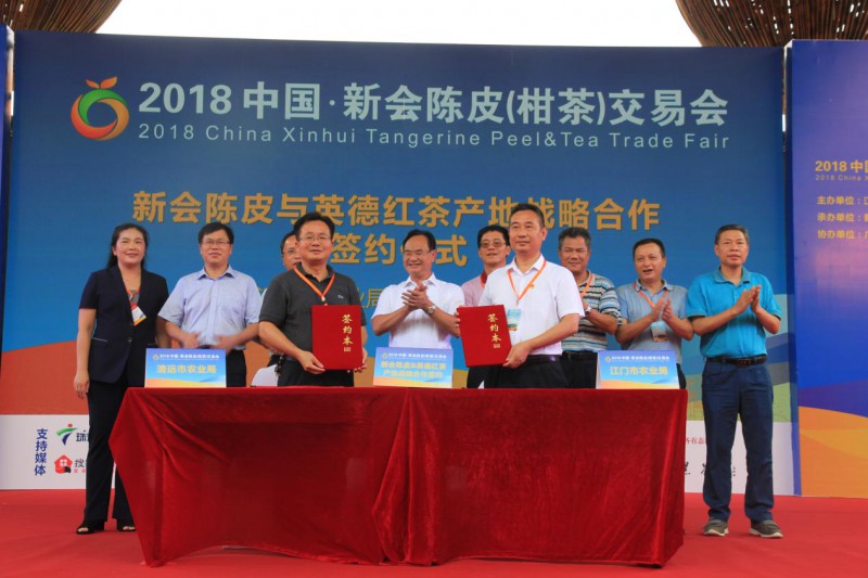开幕式上,江门市与清远市农业部门负责人签订新会陈皮和英德红茶产地战略合作协议,双方将共同打造“新英柑红”品牌,标志着“新会陈皮”和“英德红茶”这两个广东著名品牌的强强联合,双方迎来新一轮发展机遇。