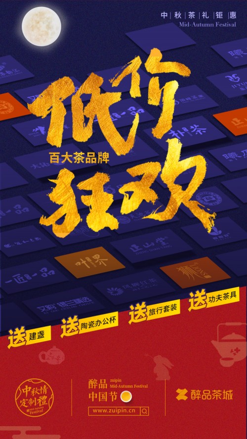 自醉品集团“醉品中国节”活动推出以来,中秋茶礼定制、教师节茶礼定制等专场活动获得消费市场的热捧。9月11日至9月24日,“赏茶赏月团圆时”中秋专场、大牌钜惠专场同步开启,“醉品中国节”中秋正式场活动拉开帷幕。