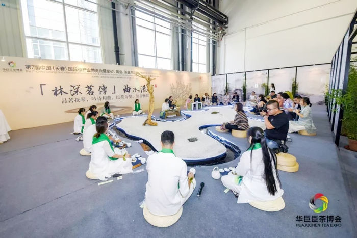 茶空间,是茶的一种美学空间慨念,也是华巨臣茶博会中的标志性亮点活动。本届茶博会特别打造以“林深茗传”为主题的曲水流觞茶空间品鉴区。结合金秋九月的长白山风景,倡导东方生活美学的理念。