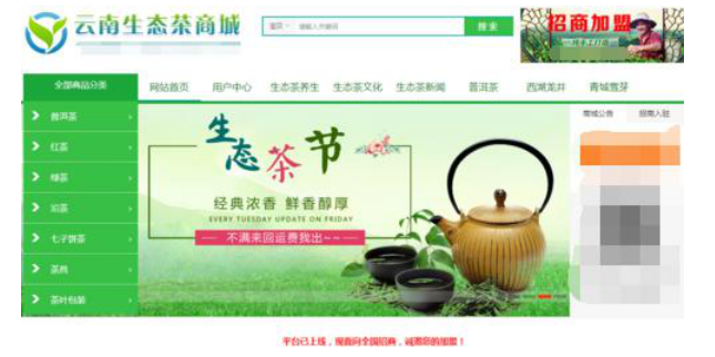 互联网+茶叶的时代,中国已成为全球最大的互联网用户市场,网民达7.51亿;互联网技术科技的不断进步,改变了市场营销中的信息流、物流、支付流、所有权流等众多问题。传统行业信息化程度加速提升,网络购物市场交易规模不断扩大、移动端保证高增速、电子商务成为新零售主流等等一系列动作无疑将推动互联网+时代发展到新高度。互联网+茶叶时代的云南生态茶,品牌特点突出、行业成熟,产品标准明确。它将借助中国这个全球最大的互联网用户市场,一步步开启连接未来的新篇章。目前,云南生态茶商城已经正式上线,叶旭诚邀全国茶企积极入驻加盟,期待您的到来!