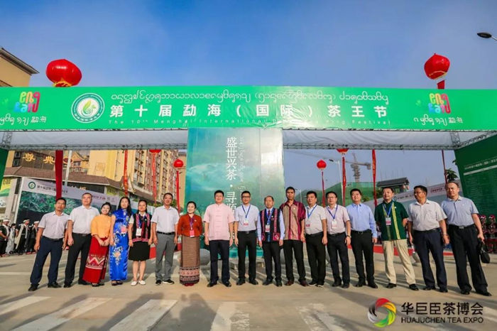最后,由云南省政协原副主席、云南省茶叶流通协会创会会长陈勋儒,中共西双版纳州委常委、州人民政府副州长袁敏道,中国农业科学院茶叶研究所副所长、中国茶叶学会理事长江用文,云南省茶叶流通协会会长沈行岗,中共勐海县委副书记、县人民政府县长张世影,西双版纳州旅游发展委员会副主任玉坎嫩,深圳市茶文化促进会会长、深圳市华巨臣实业集团总裁杨文标共同为第十届勐海(国际)茶王节启幕!