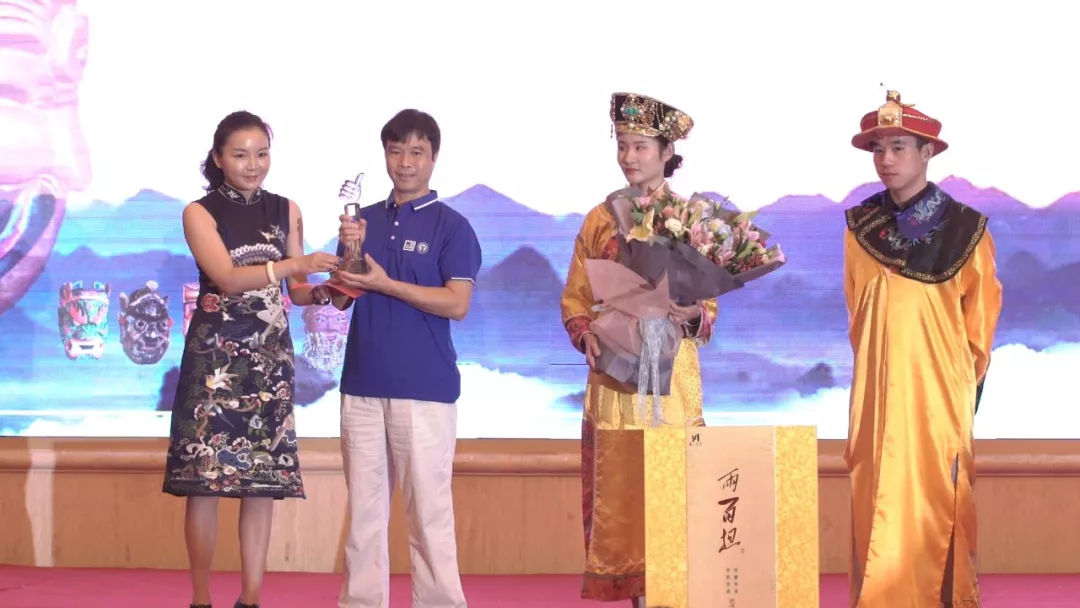 董事长李忠为广西运营中心李德坚颁发“第四届高马二溪千两节承办纪念奖”