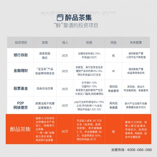 醉品茶集:“醉”靠谱的投资项目