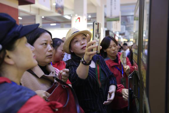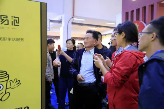 项目展位区人流如织,大家争相体验易泡智能茶饮终端