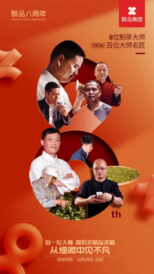 8年来,醉品集团深耕茶业互联网升级,与茶产区政府达成战略合作,与13大生态原产区签订战略合作协议,平台汇聚百大一线茶品牌,上千款精选茶品,还与魏月德、刘安兴等多位国家非遗传承人合作,保证正宗原产地直供,去除中间商,大大地降低了茶叶的成本。此次,醉品集团8周年,联合了8个顶尖茶品牌、8位大师名匠、8款代表产品,为消费者带来了一场茶叶狂欢盛宴。