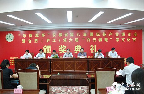 中国茶网资讯:茶博盛会圆满收官,“白云春毫”举牌扬帆。8月8日,华南城杯安徽省第八届国际茶产业博览会暨合肥(庐江)第六届“白云春毫”茶文化节颁奖典礼在合肥隆重举行。省供销社党组成员、纪检组长陈辉代表茶博会组委会作重要讲话,县供销社主任徐传发代表总协办单位出席会议并在主席台就座,县委宣传部副部长周跃东等领导出席会议。