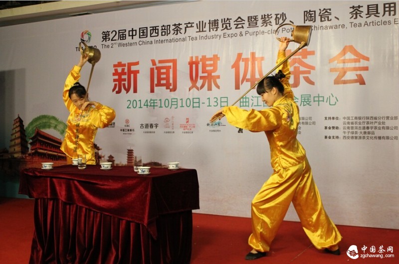 西部茶博会新闻发布会上的茶艺表演