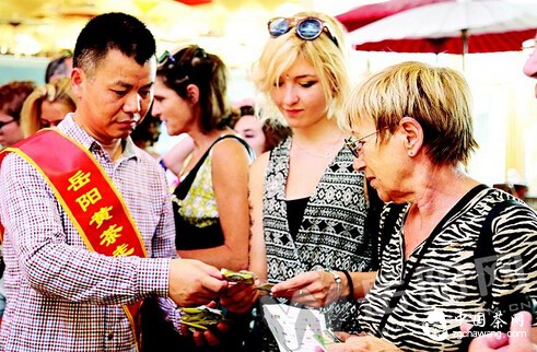 米兰当地时间8月6日,由岳阳市政府组团在米兰世博会中国馆举行的“岳阳黄茶”专题宣传日活动火爆进行,参加“岳阳黄茶”专题活动的有君山茶业、胜峰茶业、洞庭春茶业、九狮寨茶业等8家黄茶生产企业和岳州宋瓷公司选送的“岳州青瓷”茶具。意大利茶业协会主席马可先生,百年世博中国名茶国际评鉴委员会主任刘仲华教授出席指导。宣传日期间,中国大学生茶艺团表演的岳阳黄茶冲泡技艺使现场数以万计的意大利市民叹为观止。
