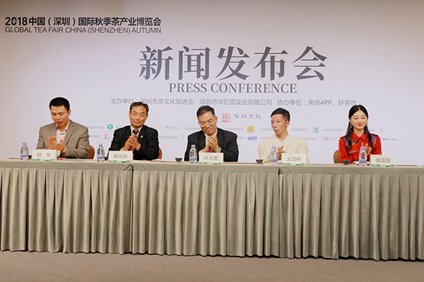 2018中国(深圳)国际秋季茶产业博览会(以下简称“2018深圳秋季茶博会”)由深圳市茶文化促进会、深圳市华巨臣实业有限公司联合主办,由茶悦App、好茶仓协办,将于 12 月 13 日至17日在深圳会展中心盛大开启!日前,组委会在深圳茶阅世界召开新闻发布会,提前揭开了这一全球茶业盛会的序幕。