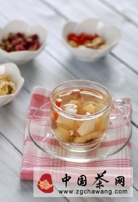 材料:水蜜桃、玫瑰、菊花、甘草、枸杞、冰糖