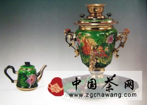 俄罗斯茶具最有名的是铜茶炊,俄罗斯的第一批铜茶炊是在18世纪初问世的。茶炊的主要产地在图拉市,因此有“茶炊之都”的美称。俄式茶炊是从蒙古人所用的火壶发展而来,这种茶炊下部有炉火,而且插在中部的一根内管可以保持水温。很浓的茶是在位于顶部的小茶壶中泡制的,并且可通过壶侧的水龙头中的热水进行稀释。俄式茶炊可保持茶温好几个小时,并且时刻能为任何数目的家庭成员和客人提供准备好了的茶水。在以前的俄国,无论贫富,每一个家庭里都有茶炊,即使出门旅行也随身带着它。