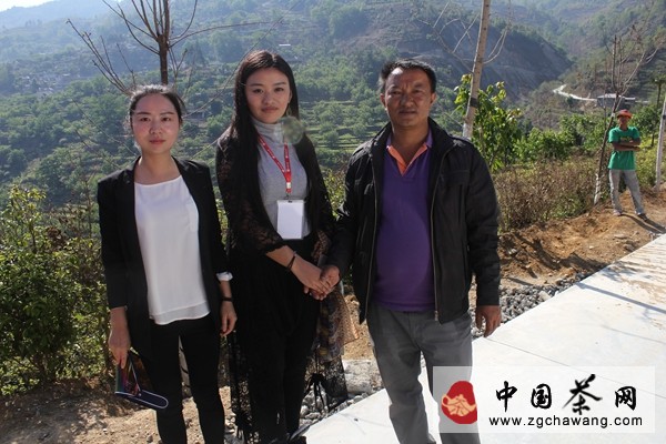 北大茶学班负责人安心(中)与 锦绣村书记(右) 讲角员(左)合影