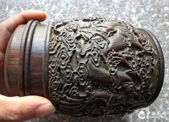 老乡家中的传家宝,老竹根精雕龙纹茶叶罐。