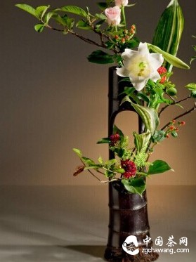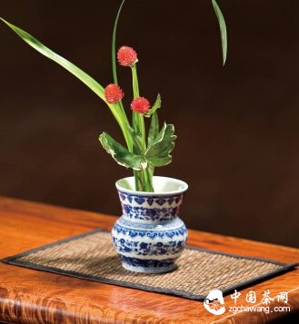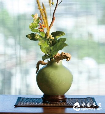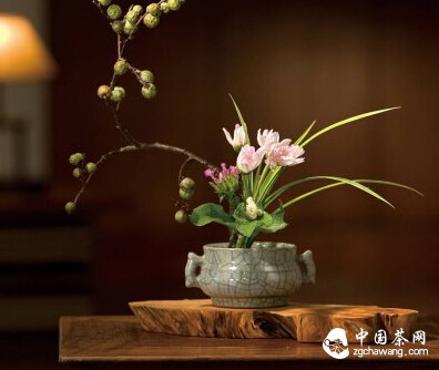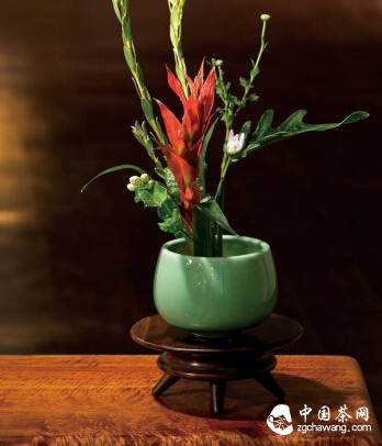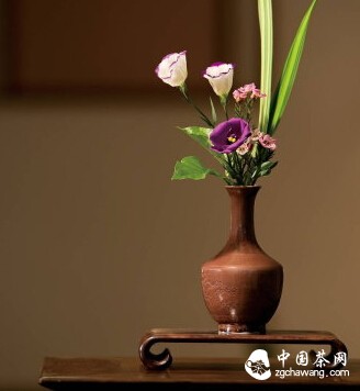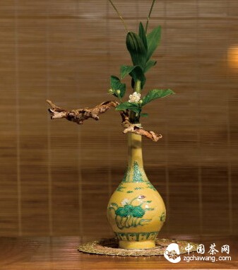 在茶室的特定环境下,插花作品一般不宜过于华丽,色彩过于张场,要与茶室素雅的环境相协调,尽量少用红艳而大的花材。