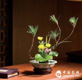 茶室插花常采用中国传统插花艺术,作品强调其自然美、线条美和意境美的同时色彩不过于华丽。常选用松、竹、梅、蜡梅、银柳、桃花、南天竹、红叶、菊花、百合、荷花、紫藤等传统花材和枯枝、根材、藤条等。选择花材应注意掌握如下几点: