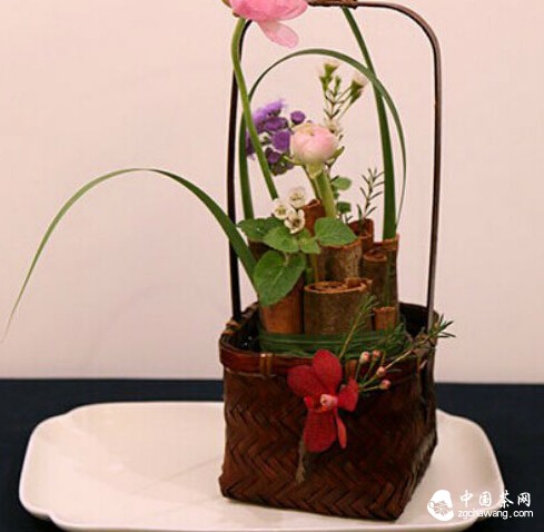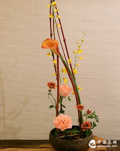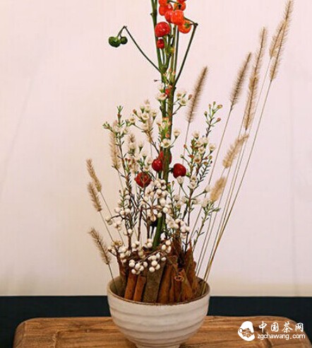 盘花的特点是盘器较浅,但器面广,可取多点插作,也可欣赏水面。