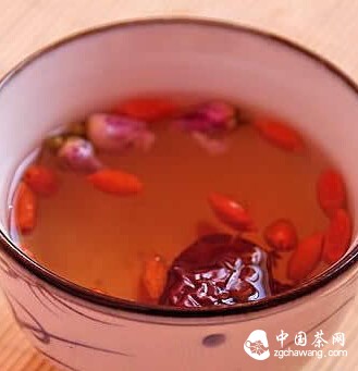红枣性温味甘,补中益气,养血安神。枸杞性味甘平,滋补肝肾,养肝明目,消除疲劳。两者放在一起,不但美味营养,还可以提升人的好气色。需要注意的是,湿热重的人不宜食红枣,可以只泡枸杞,或将红枣改为红茶,也能起到明目、养肝、益血、抗疲劳的功效。红枣要去核,才不会太燥热,可常饮。如觉得味淡,可适当加点冰糖或蜂蜜