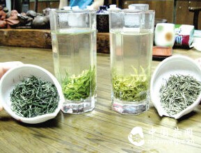 一观色泽:优良的茶叶一般都色泽调和一致、明亮有光泽;凡色泽乱杂、枯暗无光的茶叶,品质较次。