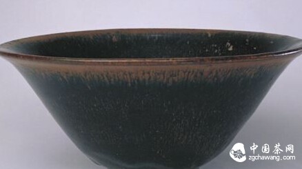 宋代前期,点茶法与煎茶法并存,然斗茶的兴起,使得煎茶法在宋代后期基本被摒弃,点茶成了主要的饮茶方式。斗茶据考起源于福建建州,是茶农们评比新茶优良次劣的一种比赛活动。两宋时建州北苑生产的“龙团凤茶”乃进御贡茶,极为珍贵,斗茶风靡全国或许正是因为这种民间活动随着贡茶传入了朝廷,并受到皇帝的推崇。而同样来自福建的黑釉茶盏也随之声名鹊起。蔡襄《茶录》上说:“茶色白,宜黑盏,建安所造者绀黑,纹如兔毫,其坯微厚,熁之久热难冷,最为要用。”宋徽宗在《大观茶论》中也说“盏色贵青黑,玉毫条达者为上”。 斗茶时,茶面泛出的汤花呈白色,建盏的黑釉与茶汤的白色正好相互映衬,而汤花形成的水痕亦清晰可见,故宋人斗茶喜用建盏。建盏之于斗茶功用具体如何,我们来赏析几件代表性建盏。本文所介绍的茶具主要为2010年杭州南宋官窑博物馆举办的“清雅——南宋瓷器精品大展”之展品。
