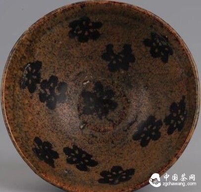 宋吉州窑鳝皮地剪纸梅朵纹盏 口径10.2厘米、底径3.9厘米、高4.8厘米。吉安市博物馆藏。
