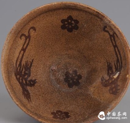 民间剪纸艺术是中国最为普及的乡土艺术,然而把民间剪纸的实物,直接运用于陶瓷生产的过程中,取得这种独特的效果,却是吉州窑的创新。剪纸纹样中,最常见也是最深入人心的花纹就是梅花,所谓“清友者,梅也”。梅花美丽而不妖冶,花味清韵且又芳香,与宋代文人追求质朴、淡泊、清奇、雅致的精神不谋而合。另一种应用较多的题材是鸾凤纹,凤是中国古代先民崇拜的对象,人们把它视为“神鸟”,希望能给人们带来光明与希望。以上这4件吉州窑盏皆是应用这两种纹饰装点内壁的。为何只装饰内壁呢?《清异录》中记有一种名为“漏影春”的饮茶之法,即“用镂纸贴盏,糁茶而去纸,伪为花身,别以荔肉为叶,松实、鸭脚之类珍物为蕊,沸汤点搅”。这是一种茶中加料的饮茶法,剪纸贴花的装饰手法为此茶的造型艺术锦上添花。