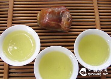 任传统正宗的铁观音外形色泽砂绿油润,汤色金黄或金黄泛绿,金黄色是主色调,摊开叶底可看到一些因发酵而红变的边缘(即绿叶红镶边)。但是,有些人将“清汤绿水”这个绿茶的特征视为铁观音的特征。