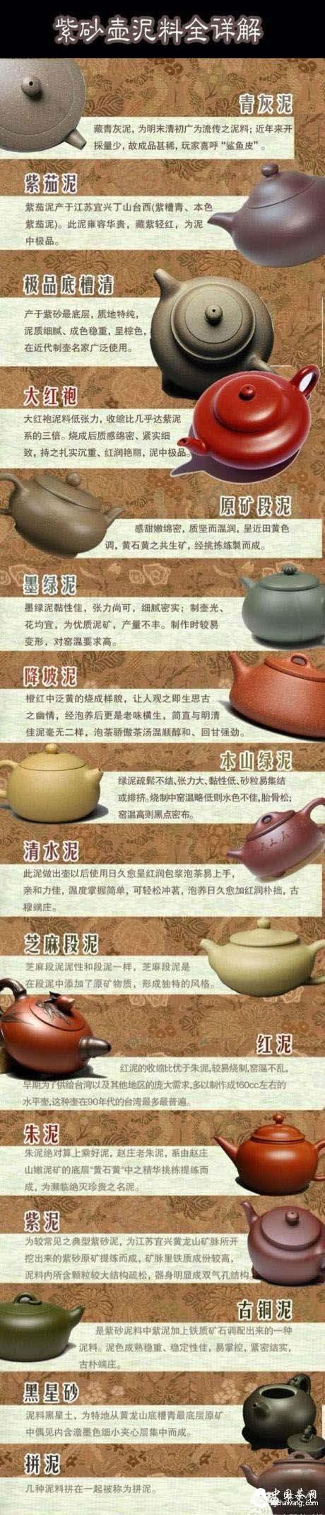 在制作紫砂壶的过程中,泥料是最主要的因素,是决定一把紫砂壶品味的重要标尺。制作紫砂壶的泥料,种类有很多种,主要分为三大类:紫泥、红泥、绿泥,这三大类中又分为很多小类。