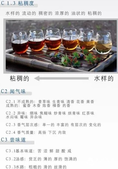 砂:喝过茶汤之后,口腔内有一种砂砂的感受。如同喝了一碗红豆汤,留下口中那种浓砂感受。这种砂砂感受会带给口腔一种舒服的感受。