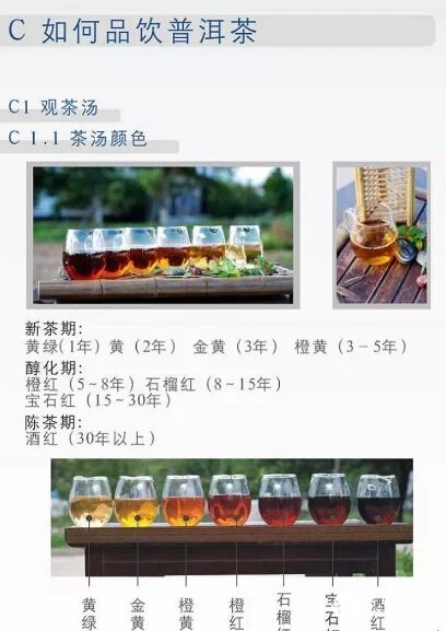 能够认知而鉴别普洱茶的生与长,才能有足够的能力,随心地去品尝普洱茶。虽然各人所拥有的感性情怀不同,但普洱茶的真性却只有一个。比方在观看红色时,由于各人生理上的差异,而对红色的感受有所不同,却都有这是红色的共识。我们的视觉、味觉和嗅觉标准,虽然有着很大的差异,也影响了对普洱茶的感受,然而大家已经能从普洱茶得到一个稳定而真实的自我标准,也就应该有了品评普洱茶条件和能力了!