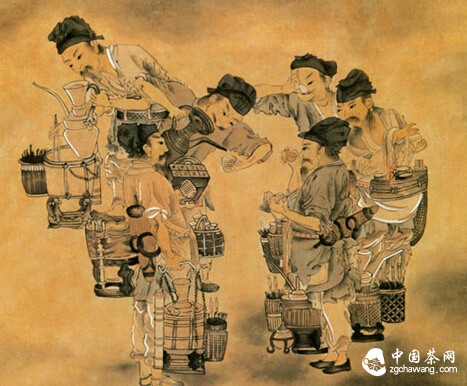 宋人喜欢斗茶,又称为“茗战”,它是古人集体品评茶叶品质优劣的一种形式。随着民间饮茶之风的盛行,斗茶在民间普及。文人墨客们也在书斋里、亭园中以茶相较量。最后连宋徽宗赵佶亦亲自与群臣斗茶,把大家都斗败了才痛快。在中国茶事中,范仲淹与章岷斗茶,也留下一首脍炙人口的范仲淹所作的《和章岷从事斗茶歌》。范仲淹与章岷斗茶咏诗,章岷先作《斗茶歌》,范仲淹看后,佩服有加,连连称颂,并即和韵: