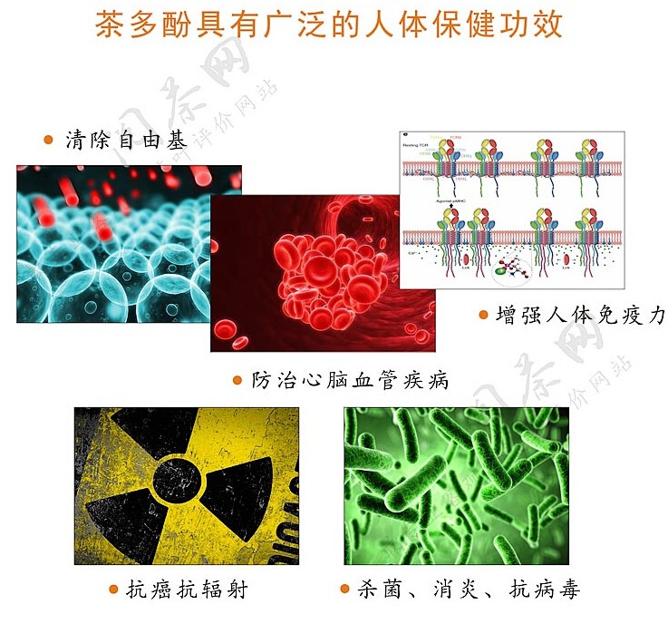 (1)抗氧化的作用。这主要是由于茶多酚可以提供丰富的离子H+,可以消除人体内的过多的自由基,起到了人体自由基清除剂的作用。