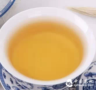 莹黄:汤色晶透,无杂质。一般多是5年以茶的生茶所具的汤色。