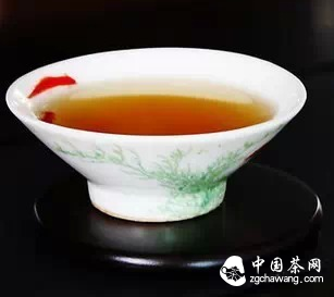 浅红:泛红色,深度不足,多为陈年熟茶,发酵过重的汤色。