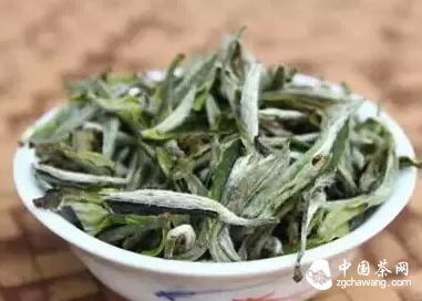 白牡丹——白牡丹因其绿叶夹银白色毫心,形似花朵,冲泡后绿叶托着嫩芽,宛如蓓蕾初放的牡丹花。
