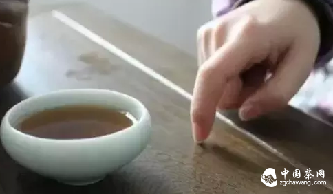 接茶后敲击桌面——“感谢你的茶,不多说,茶里体会!”
