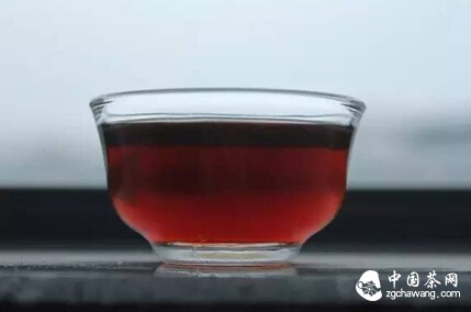 红褐:汤色红浓,红中透紫黑,匀而亮,有鲜活感。观察叶底,多呈褐色欠柔软,滋味较醇和,“八成熟”的普洱茶常见此汤色。