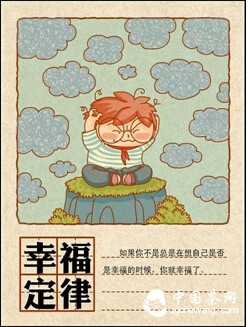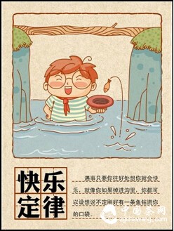 2、快乐定律:遇事只要你往好处想你就会快乐,就像你如果掉进沟里,你都可以设想说不定刚好有一条鱼钻进你的口袋。