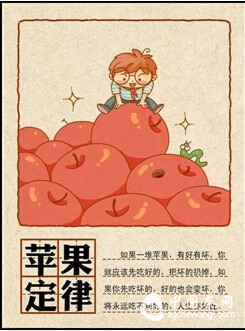 1、苹果定律:如果一堆苹果,有好有坏,你就应该先吃好的,把坏的扔掉,如果你先吃坏的,好的也会变坏,你将永远吃不到好的,人生亦如此。
