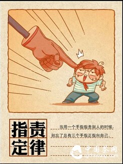 17、指责定律:当用一个手指指责别人的时候,别忘了总有三个手指指向自己。