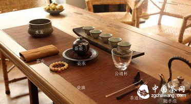 首先是备具,干泡法的茶具主要有茶道组(亦称茶道六君子)、壶承(就是放盖碗和公道杯的用具)、盖碗(也可用壶)、公道杯、随手泡、水盂、过滤网和茶杯。