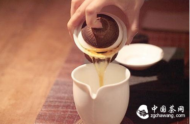 出汤的时候,拇指和中指捏住盖碗的边缘,食指搭在盖子上,盖子和杯子间留出一道缝隙,让茶汤顺利的流出。