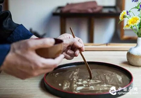 点茶前,用沸水冲洗杯盏,预热饮具,以使“盏热而茶难冷,难冷而茶味不变”。将茶粉放进盏中,用最好的汤瓶和水加以冲点,点水时要直沏而入,水柱有力,不能时断时续。然后“调膏”,根据茶盏的大小,用勺挑上一定量的茶末放入茶盏,再注入瓶中沸水,调和茶末如浓膏油。最后用茶筅击拂,终成茶汤。
