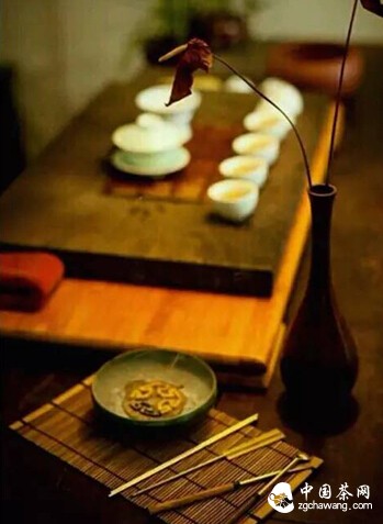 一杯好茶在手,神思飞扬,文人要求有清、幽、寒、静、雅、淡之品茗环境,诗僧皎然品茶伴以花香琴韵:“晦夜不生月,琴轩犹为开。墙东隐者在,淇上逸僧来。茗爱传茶饮,诗看卷素裁。风流高此会,晓景屡徘徊。”