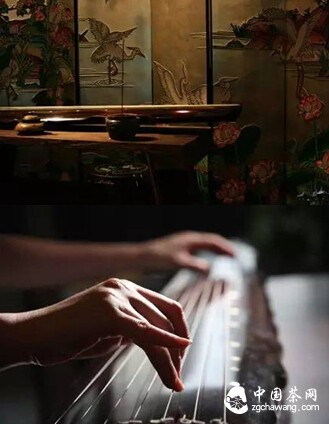 香茗自有古琴配,喝茶听琴更雅致。一杯香茗,一曲清音,把盏一杯香茗,任丝丝清香冲淡浮尘,幽幽琴声带来一片清雅、宁和。