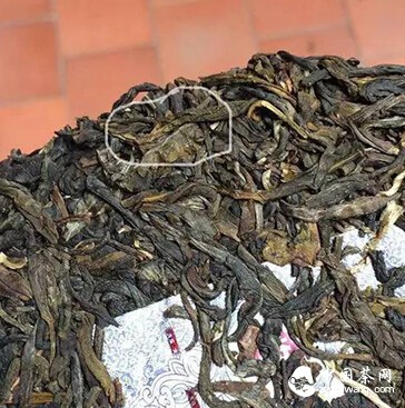 上面这个茶饼的黄叶,俗称“黄片”,一般在制作茶饼时是要挑拣出来的,以免影响观感。它可能是一些粗老的叶子,也可能是在揉捻过程中没有揉成条的叶片。