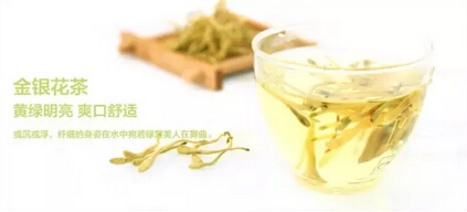 6、金银花茶味甘,性寒,具有清热解毒、疏散风热的作用。金银花有清热解毒、疏利咽喉、消暑除烦的作用。可治疗暑热症、泻痢、流感、疮疖肿毒、急慢性扁桃体炎、牙周炎等病。