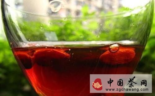 直接将枸杞一小把及红枣放入红酒中,浸泡十天,即可饮用。
